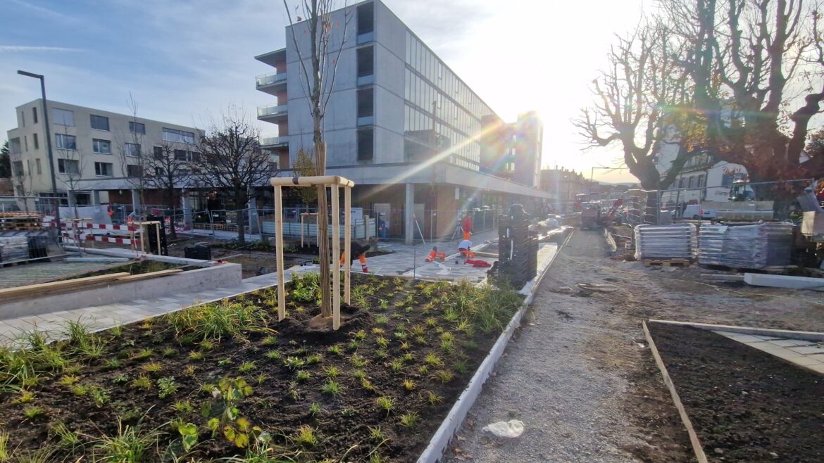 Die Belagsarbeiten kommen sehr gut voran und auch mit der Bepflanzung der Gehölze, Gräser und Stauden wurde begonnen. Es ist somit alles auf Kurs, dass die Umgestaltung bis Ende Monat abgeschlossen ist.