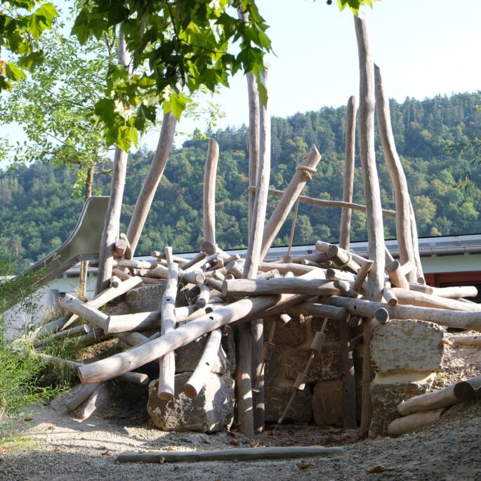Die Spielumgebung des Kindergartens in Pfeffingen wurde durch ein Spielhaus mit Röhrenrutsche erweitert....