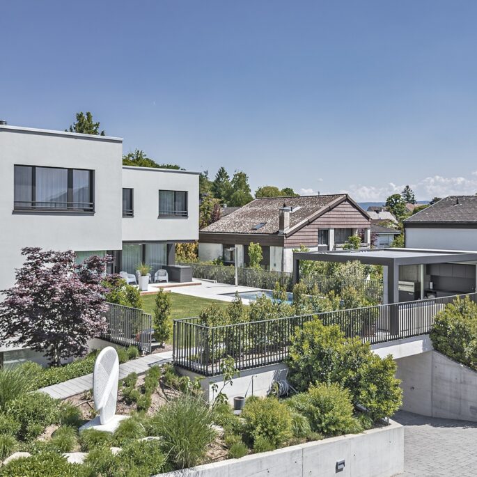 EFH Neubau mit Privatgarten in Biel-Benken BL, mit Pool, Pavillon, Gartensitzplatz und attraktiver Bepflanzung....
